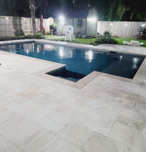 Keep in mind that travertine isn’t just for patios. You can install this natural stone on a walkway, a front porch, or even an outdoor fire place. Our favorite though, is when we use it to surrounding a beautiful backyard pool, creating that resort like feel you won't be able to get enough of!